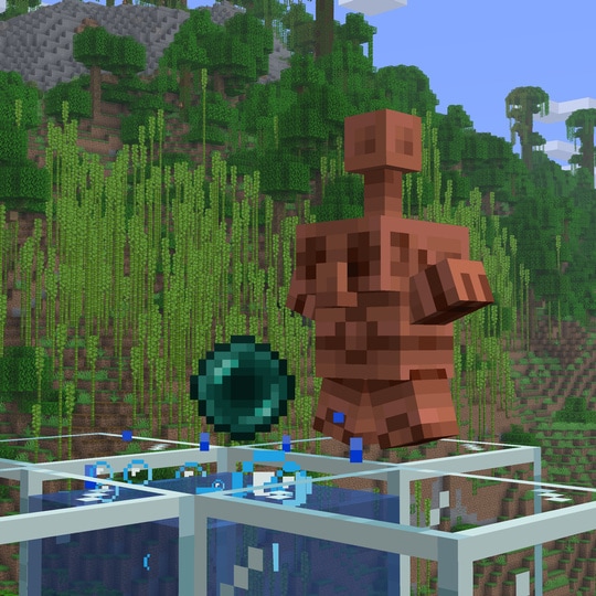 Minecraft has entered The Copper Age! Express yourself in every shade of copper as you transform this versatile metal into handy tools, shiny armor, gleaming light sources, oxidizing decor, smart storage, and even lively mechanical companions known as copper golems.